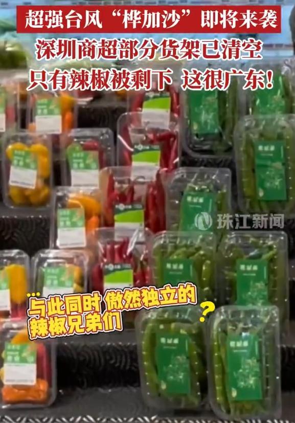 超强飓风“桦加沙”行将强势登陆广东,整个广东枕戈待旦。为了应对飓风或许带来的影响,市民们纷繁前往超市抢购物资,一时间,超市的货架被抢购一空,局面非常壮丽。但是,在这空空的货架上,有相同东西却显得分外突兀,那就是辣椒。